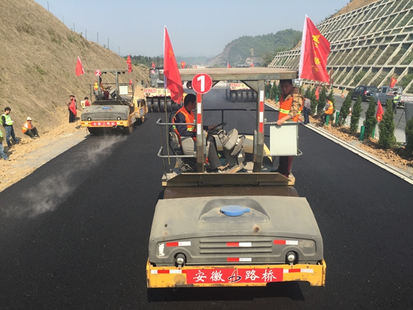 為順利完成此次試驗段施工,項目部精心安排,科學(xué)組織,做好配合比設(shè)計、驗證和施工方案的報批手續(xù),以滿足施工前各項準(zhǔn)備工作的要求。施工過程中,嚴(yán)把質(zhì)量關(guān),瀝青出場、到場、攤鋪、初壓、復(fù)壓和終壓溫度等相關(guān)指數(shù)均在設(shè)計范圍內(nèi),各環(huán)節(jié)銜接有序,控制到位。試鋪結(jié)束后對試鋪路段進(jìn)行了壓實度、平整度、滲水、厚度、高程等指標(biāo)檢測,各項指標(biāo)均符合規(guī)范及設(shè)計要求。